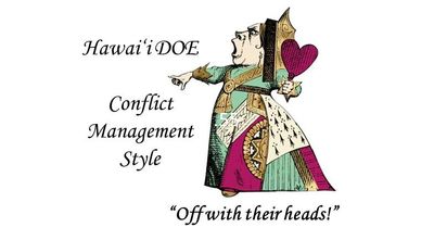 The Hawaii Department of Education does not train its employees how to handle conflict in a professional manner. Click here to read about my efforts to obtain DOE training materials regarding conflict management. They don't exist!