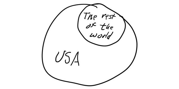 When I was a software instructor for a multi-national corporation, I'd start with my joke ab-out how American's view the world and I'd draw the picture above. Later, someone would inevitably ask me if I was raised outside of the U.S. No, I wasn't, but I'm smart enough to realize that I live in a country where I have to be careful to not use "big" words longer than three syllables if I want the average person to be able to understand me.